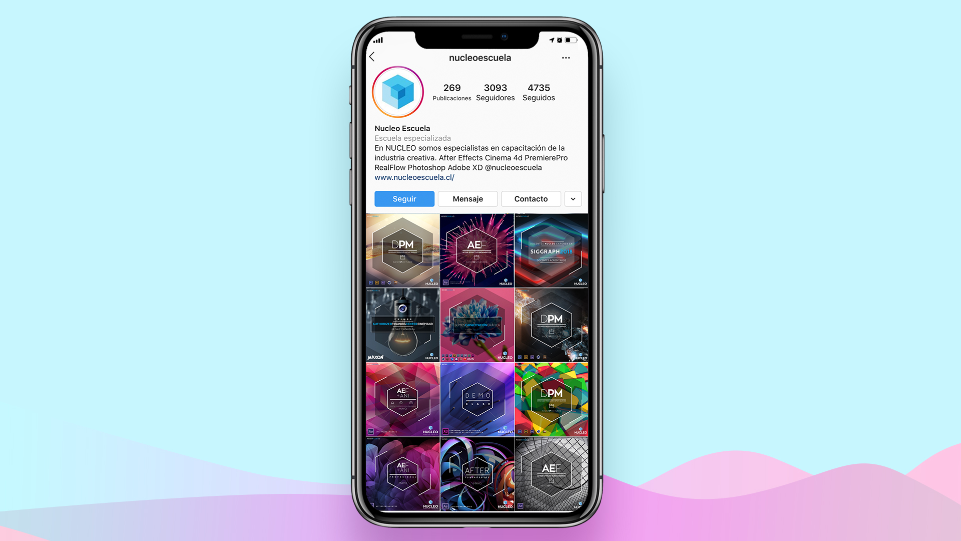 Núcleo Escuela es una institución especialista en la formación de los mejores profesionales en la industria audiovisual. Participamos activamente desde la construcción de marca, hasta la creación de gráficas y contenidos para RR.SS. Para el logotipo nos basamos en el concepto tridimensional y sus ejes X-Y-Z, para reflejar el volumen de los objetos en tercera dimensión, basándonos en lo que enseña de Núcleo Escuela. En los diseños de RR.SS, pendones y papelería, se seleccionaron formas tridimensionales, incluso material de los mismos estudiantes, para seguir con la línea conceptual.